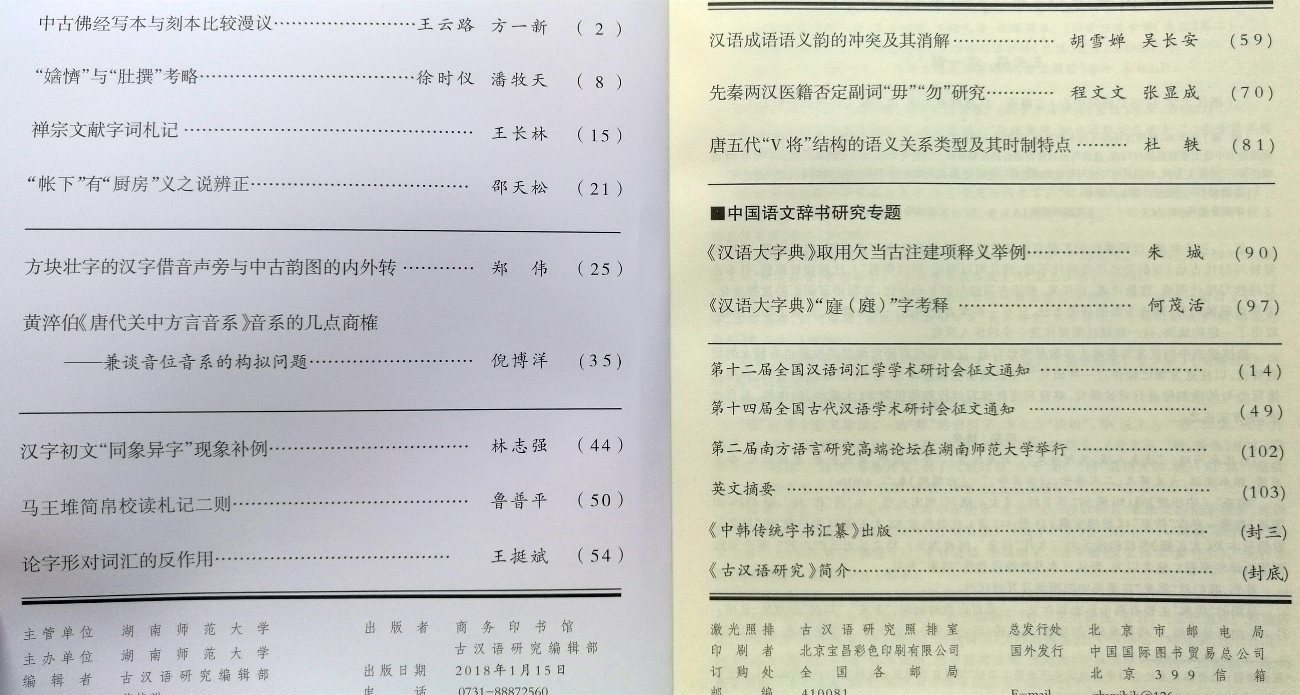 《古汉语研究》2018年第1期(总第118期)