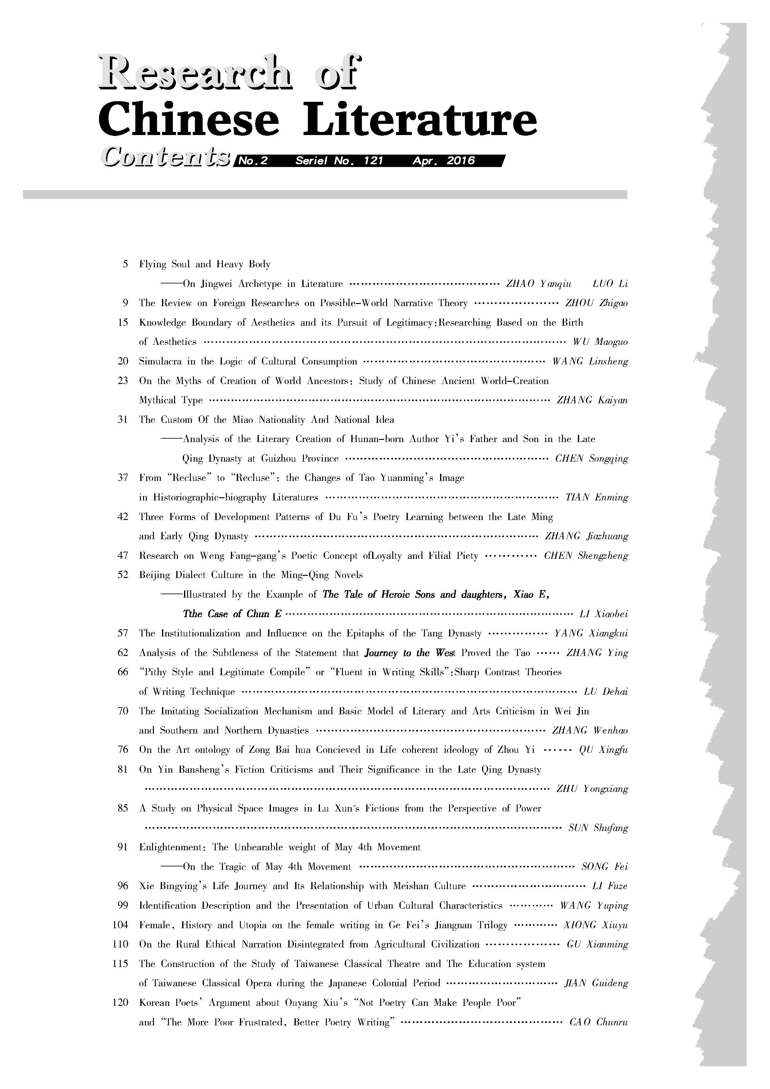 上一条:《中国文学研究》2016第一期(总120期)(补)