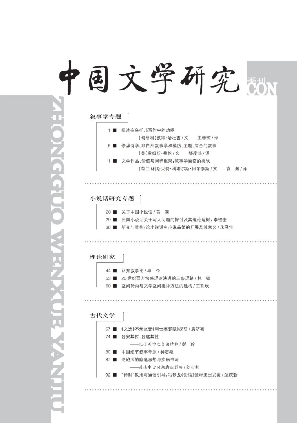 《中国文学研究》2018-3目录