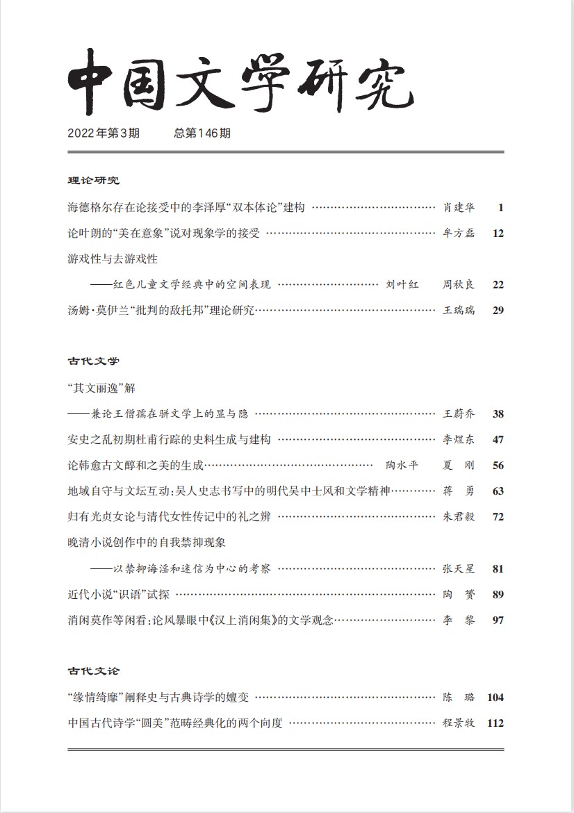 下一条:《中国文学研究》2022年第2期总第145期