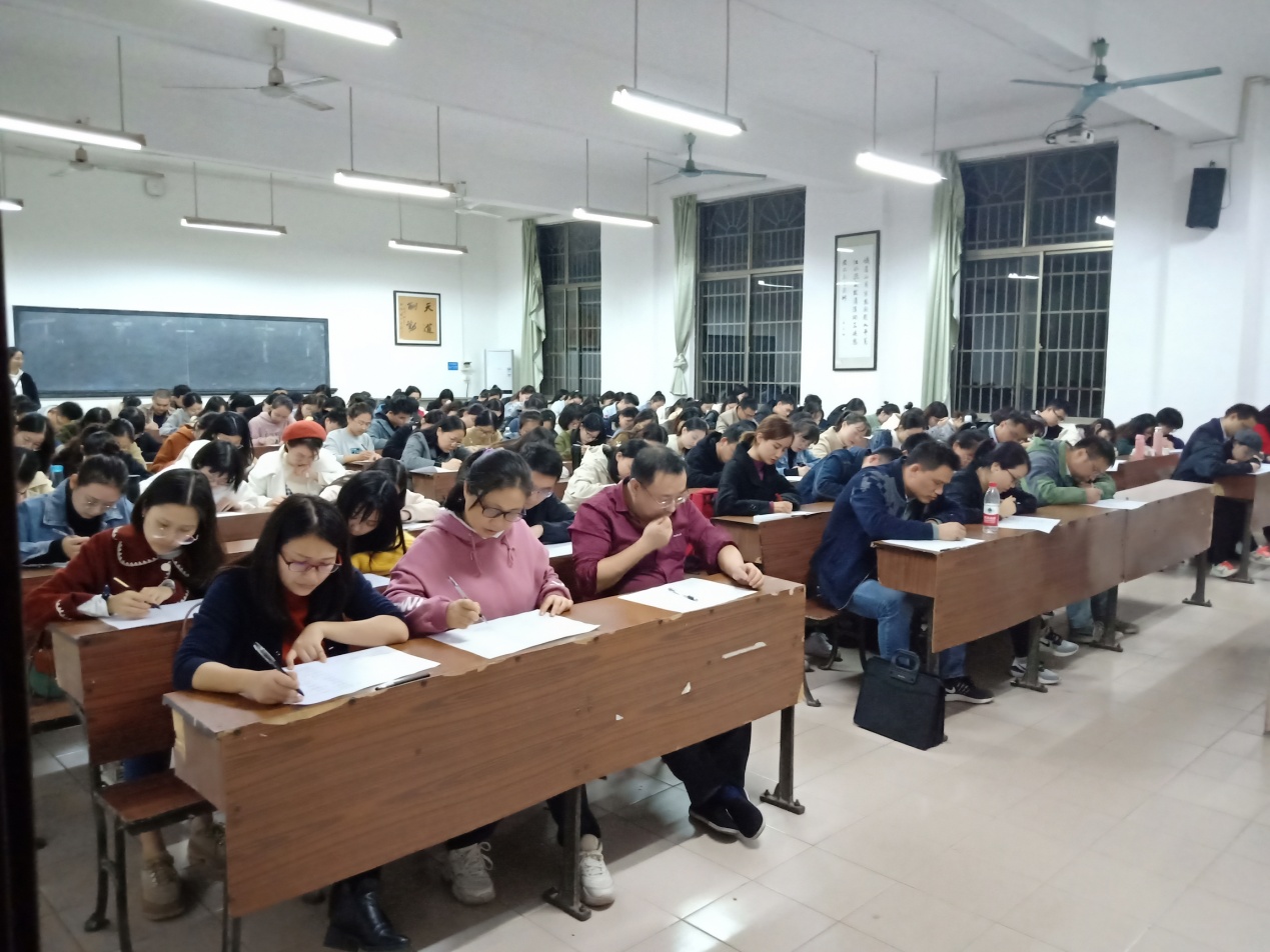 为深入学习贯彻习近平新时代中国特色社会主义思想,检验学习效果,真正达到理论学习有收获的目标,进一步推动主题教育深入开展,2019年11月13日晚7点,公司在文渊楼316教室举行“不忘初心、牢记使命”主题教育理论知识竞赛,公司党委办主任夏云飞、院学工办主任周灿担任监考,公司党委书记李伶俐、副书记熊剑峰到场巡考。