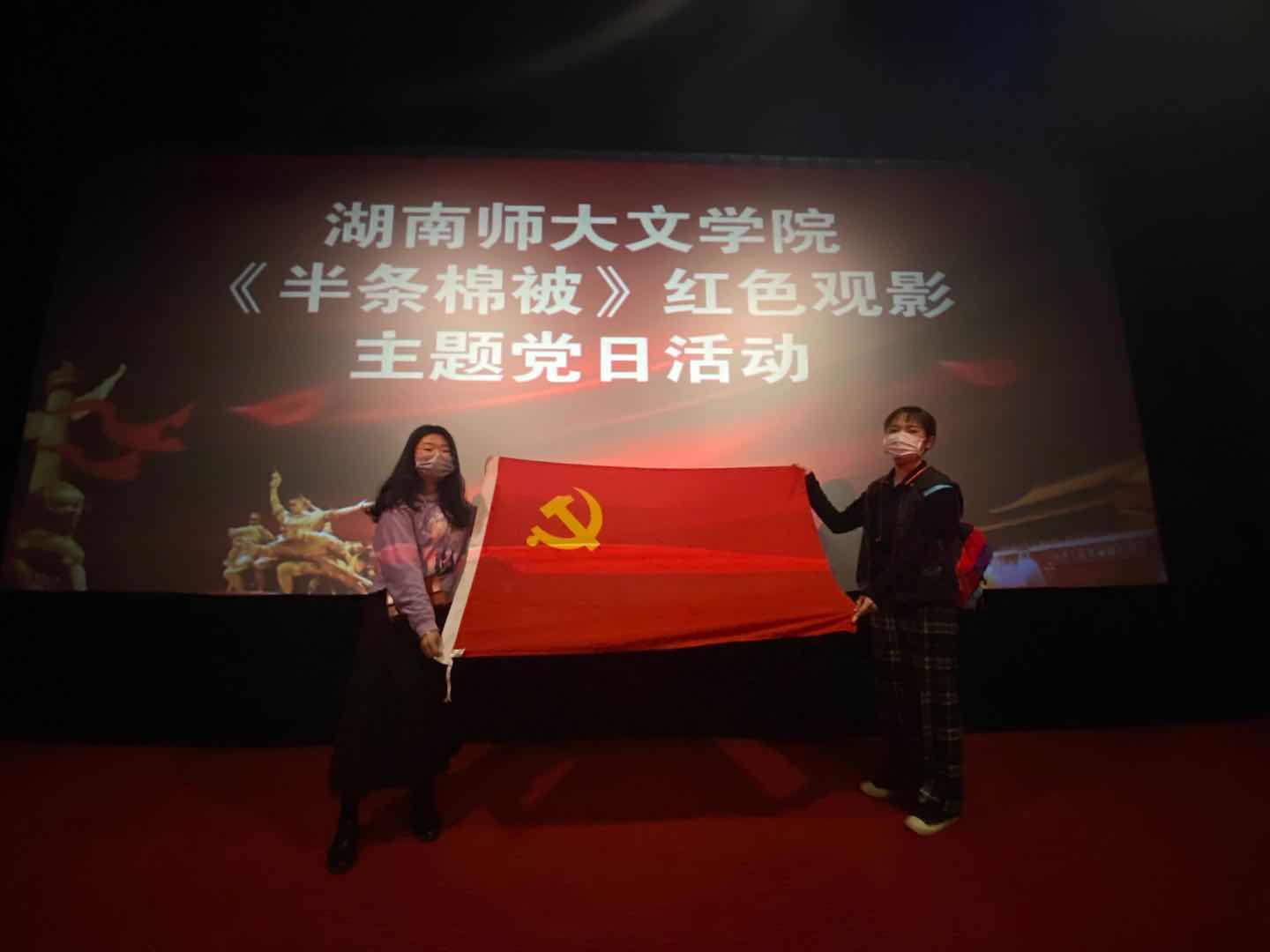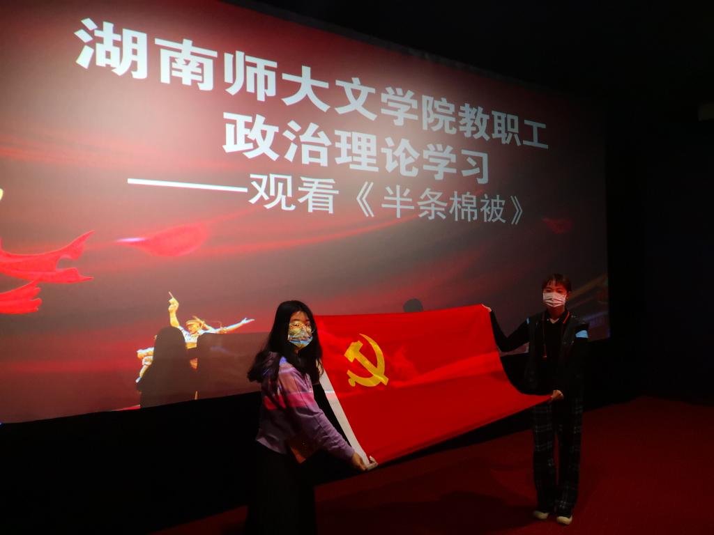 2020年10月22日下午,suncitygroup太阳成集团组织公司全体教职工到通程亿鑫电影院集中观看电影《半条棉被》,员工党支部委员全体参加。