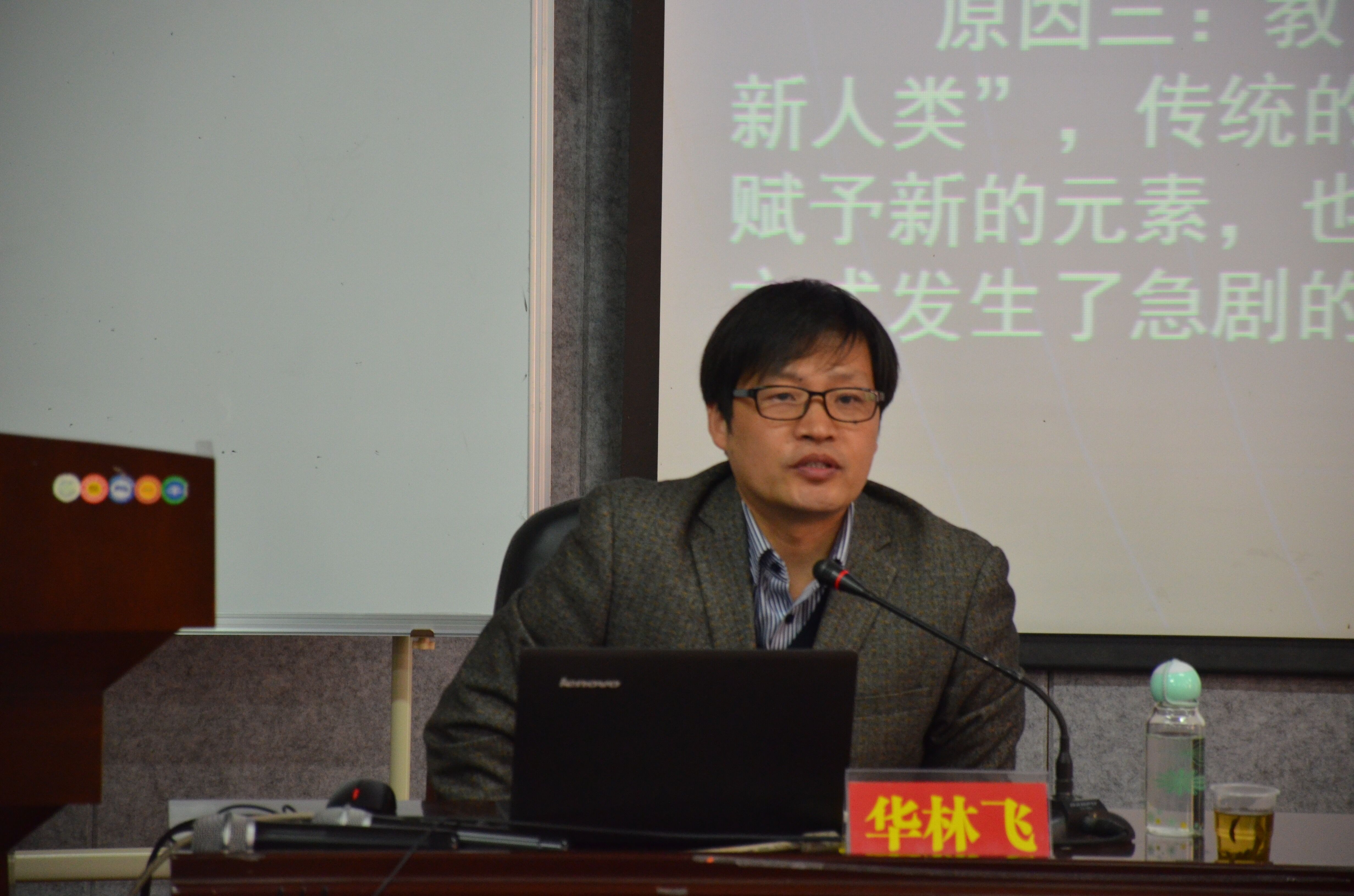 随后,华林飞分析了他对“智慧”二字的理解,并结合自身的教学经历提出了“智慧三果”和“智慧思维”。“智慧三果”即思想、语言、行动,“智慧四维”即知性智慧、理性智慧、情感智慧和实践智慧。华林飞说:“一个有智慧的董事长能够用理性思维对感性材料进行加工”。在获得第一手资料后,能够运用自己的智慧将感性思维进行升华,并作出价值取向和判断选择。