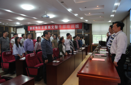 (通讯员栗焓)5月3日上午,湖南地税直属局文秘干部培训班在216教室举行开班仪式。suncitygroup太阳成集团文公司党委书记李伶俐、副经理彭万福、湖南省地方税务局直属局副局长朱祖纯、副局长王亮出席开班典礼。开班典礼由suncitygroup太阳成集团成教办主任张德强主持。