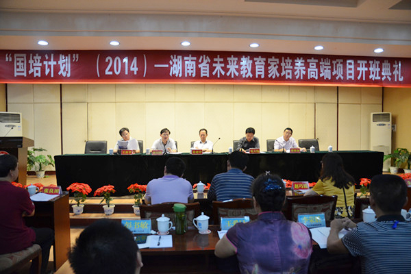 (湖南师大新闻网 张依倩)8月15日上午,“国培计划(2014)”湖南省未来教育家培养高端项目 (初中学科)研修班在公司红楼五楼报告厅开班。省教育厅副厅长葛建中,公司党委书记张国骥、副董事长王善平出席会议。开班仪式由省教育厅教师工作与师范教育处处长张大伟主持。