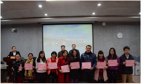 2015年11月13日下午,来自广东省珠海市金湾区各小学的50名小学语文老师,完成培训任务在217学术报告厅举行结业典礼。本次研修班班长、金湾区三灶学区教研员白春生老师、suncitygroup太阳成集团文公司党委书记李伶俐出席结业典礼。典礼由suncitygroup太阳成集团成教办主任张德强主持。