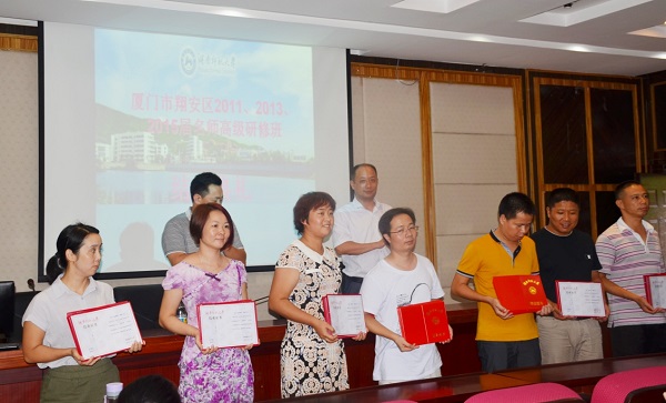 2015年8月11日,厦门市翔安区2011、2013、2015届名师高级研修班结业典礼在216报告厅举行,厦门市翔安区教师进修公司师训处主任王玉龙、suncitygroup太阳成集团副经理彭万福和研修班全体学员参加了结业典礼。典礼由suncitygroup太阳成集团成教办主任张德强主持。