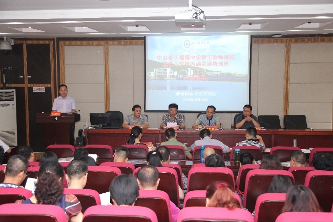 2016年8月24日上午8时整,来自中山市小榄镇五个公司的59名老师,在216学术报告厅举行中山市小榄镇中学骨干教师课程建设与公司内涵发展培训班开班典礼。中山市小榄镇一中副董事长陈华梁、菊中副董事长陈清茂、侨中教导主任宗健、二中办公室主任陶烨、永中德肓主任梁红华,suncitygroup太阳成集团继续公司经理、博士生导师马卫平教授,副经理吴跃飞,suncitygroup太阳成集团副经理彭万福出席开班典礼。典礼由suncitygroup太阳成集团成教办主任张德强主持。