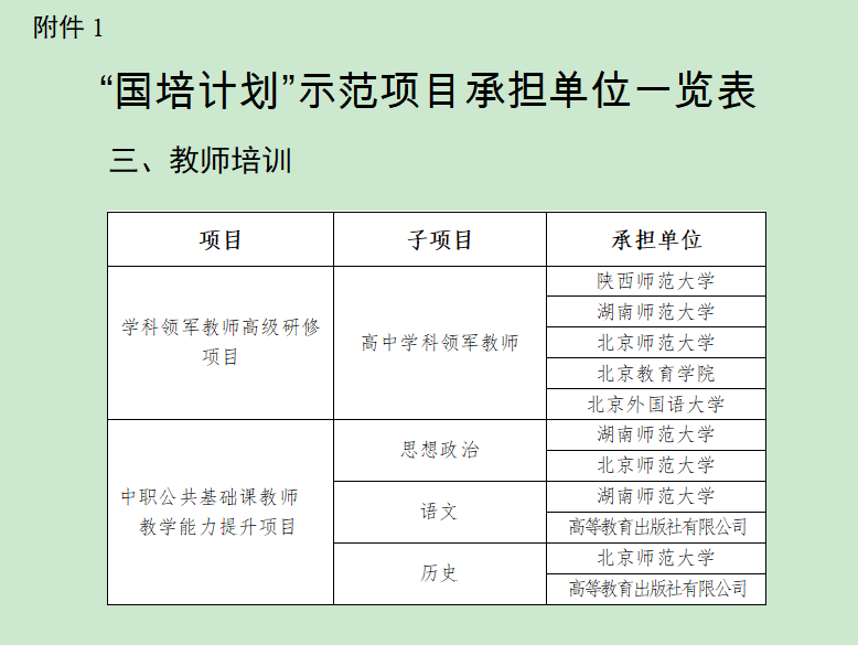 2022年“国培计划”示范项目设置四大类:1、培训团队研修,经评审,确定北京教育公司等8家单位承担培训任务;2、校园长培训,继续支持国家教育行政公司等19家单位承担中小学幼儿园骨干校园长高级研修、优秀校园长高级研究和中小学幼儿园党组织书记示范培训等5个项目;3、教师培训,经评审,确定suncitygroup太阳成集团,北京师范大学等26家单位承担培训任务,主要设置学科领军教师高级研修、紧缺薄弱领域骨干教师示范培训2个项目;综合改革项目确定陕西师范大学等22家单位承担培训任务。