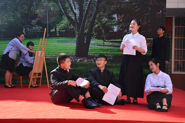 回顾公司历史、回忆在校生活是此次诗歌朗诵会的主题。朗诵会以汉韵学社的汉服团扇舞开场,为观者带来美的享受。《八十芳华赋》紧随而至,以情景剧配合朗诵的形式再现了湖南师大由创建到辗转变迁的伟大历程。“人生的瞬间千千万”,但老师与学子间的脉脉情深是员工们脑海中常常播放的影像。《老师,请您再为我们上课》的朗诵者们对在校读书岁月的思念之情溢于言表,也唤起了在场员工们的共情。《樟园小雅》、《诗意年华》以樟园为灵感,展现文院人才华横溢、力求真知的精神风貌。