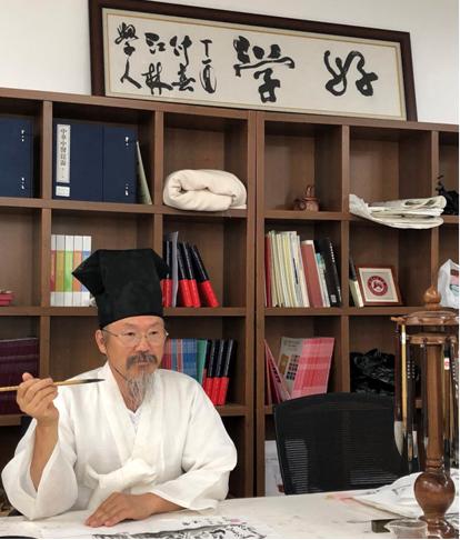 62岁的金在龙是孔院年长的员工之一。名字取自《周易》“见龙在田,利见大人”的他,常年身穿韩国传统服装,自称是“孔子的员工”,熟读四书五经,以传播儒家思想为己任,喜欢吟唱中国古典诗文和书法。因为热爱中国文化,金在龙多次去中国交流学习,但碍于语言影响交流沟通,所以进入孔院发奋学习汉语。