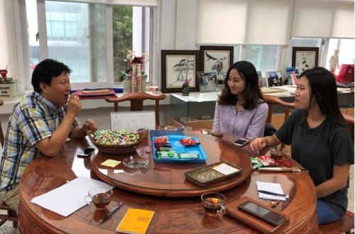 韩国圆光大学孔子公司中方经理陈明舒与孔院员工在交流