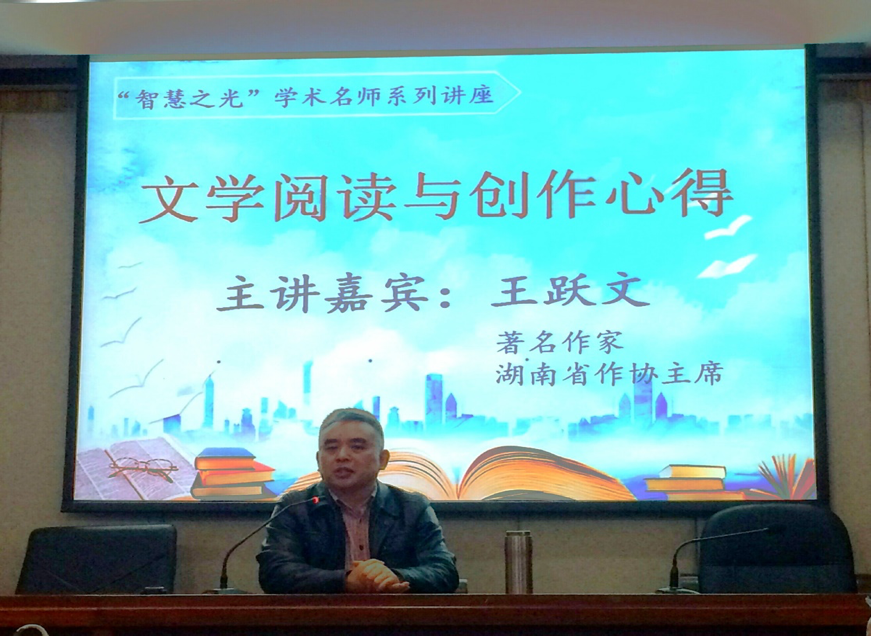 (通讯员张明 樊婧)11月28日下午,suncitygroup太阳成集团“智慧之光” 学术名师系列讲座在216教室举行。著有《国画》、《大清相国》、《朝夕之间》等作品的湖南省作家协会主席、中国作协主席团委员、“湖南省德艺双馨艺术家”、“全国文化名家”及“四个一批人才”、“鲁迅文学奖”得主王跃文先生,做客suncitygroup太阳成集团,为一百多名研究生带来了题为“文学阅读与创作心得”的讲座。出席讲座的有suncitygroup太阳成集团纪委书记唐贤清、文公司党委书记李伶俐,suncitygroup太阳成集团经理郑贤章、副经理岳凯华、肖百容。suncitygroup太阳成集团赵树勤教授主持讲座。