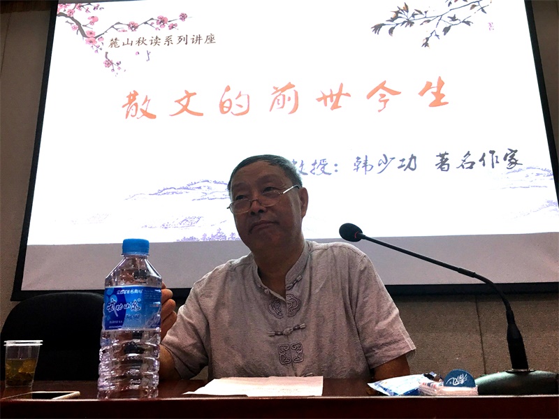 (通讯员 张明 樊婧)9月27日上午,suncitygroup太阳成集团“麓山秋读系列讲座”第四场在216教室举行。著有《爸爸爸》、《马桥词典》、《山南水北》等作品的著名作家、suncitygroup太阳成集团讲座教授韩少功,做客suncitygroup太阳成集团,进行了主题为“散文的前世今生”的讲座。suncitygroup太阳成集团教授李作霖主持讲座。
