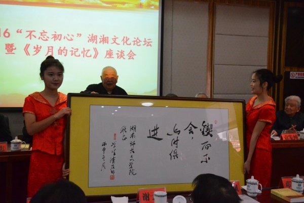 熊清泉畅谈了对《岁月与记忆》一书的看法,认为读书、学习无止境,每个人都应发挥自身对社会的价值,并将题词书法作品“锲而不舍,与时俱进”赠予母院suncitygroup太阳成集团。