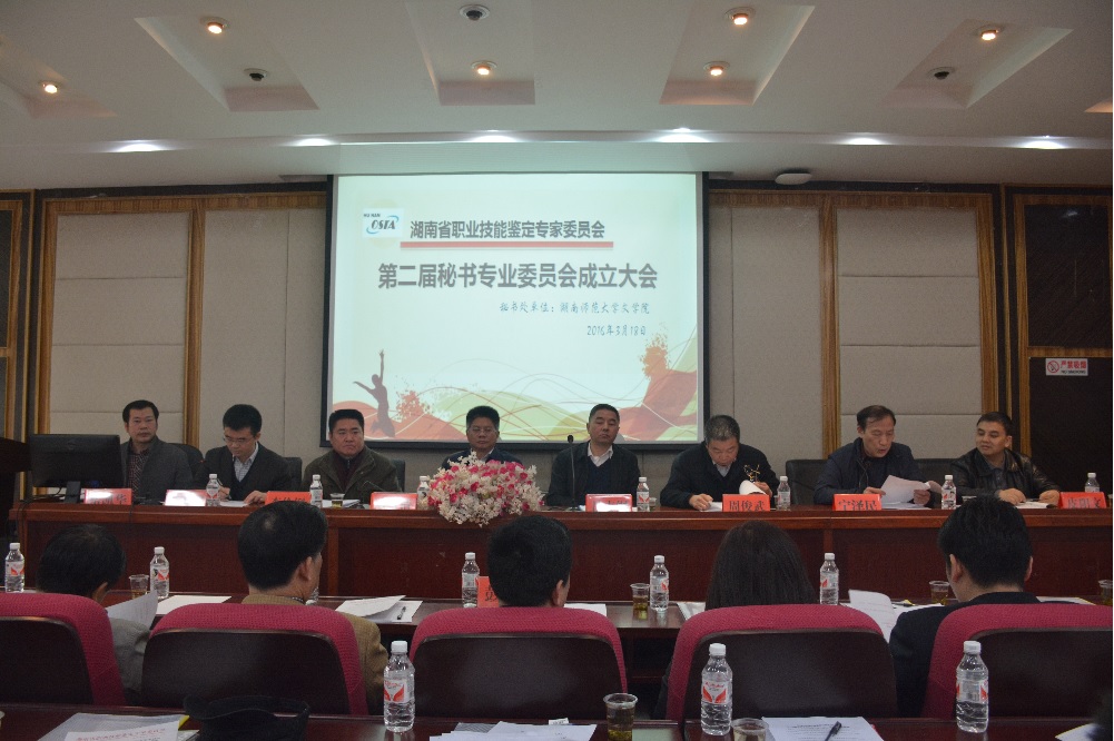 宁泽民宣读《关于调整成立湖南省职业技能鉴定专家委员会第二届秘书专业委员会的通知》和委员名单,岳凯华任第二届秘书委员会主任,李中标等5人任副主任,黄乐平任秘书长,邓石华等10人任专家委员。