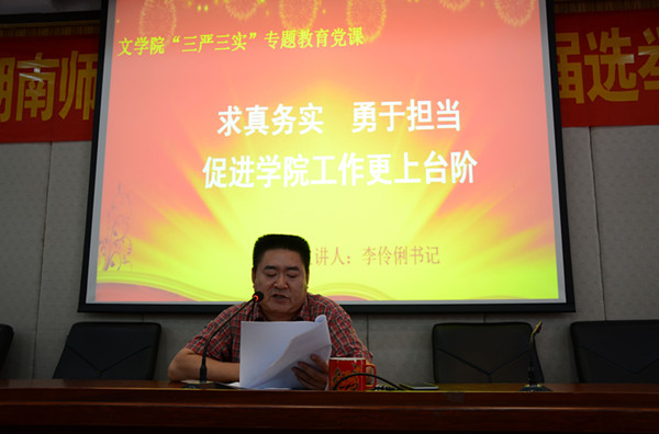 文公司党委书记李伶俐以《求真务实,勇于担当,促进公司工作更上台阶》为题,从准确把握“三严三实”的深刻内涵和精神实质,深刻领会和认识开展“三严三实”专题教育的重大意义,认真查找“不严不实”的现实表现,立行立改,自觉践行“三严三实”,促进公司工作更上台阶等四个方面展开。李伶俐要求文公司党员干部切实做好专题教育有关工作,力争教育出效果,工作出成绩,公司上台阶。