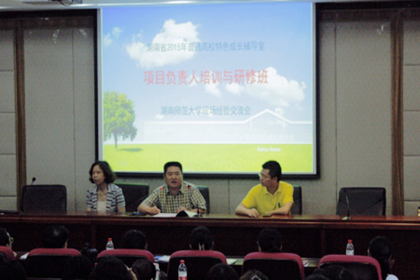 (通讯员 王开乾)6月3日下午,湖南省特色成长辅导室项目负责人培训与研修班现场经验交流会在216学术报告厅举行。员工工作部副部长申美玲、文公司党 委副书记熊剑峰与147名来自湖南省各高校的特色成长辅导室项目负责人进行了经验分享。文公司党委书记李伶俐出席活动,此次交流会由校心理健康教育与咨询 中心主任余洁主持。