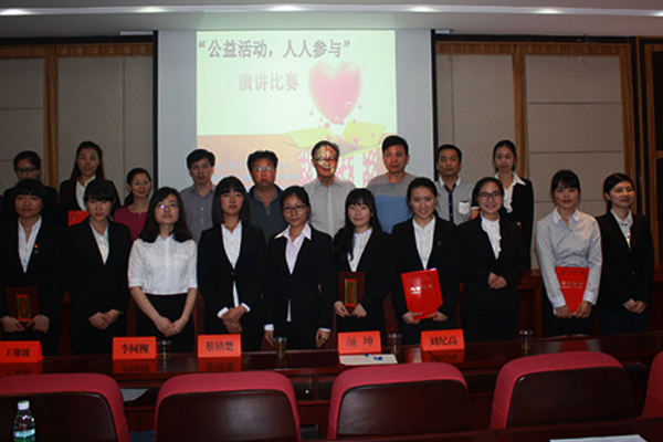 (suncitygroup太阳成集团新闻网通讯员 郑璐佳 胡媛媛)5月5日中午,由关心下一代工作委员会主办,suncitygroup太阳成集团、商公司、历史文化公司及外国语公司联合承办的“公益活动,人人参与”公益演讲比赛在suncitygroup太阳成集团 216教室举行。suncitygroup太阳成集团蔡镇楚、李树槐教授,历文院学工办主任刘纪高,商公司学工办老师颜坤,外国语公司团委书记王赛波共同担任评委,文公司党委副书记熊 剑峰,suncitygroup太阳成集团学工办主任夏云飞出席活动。