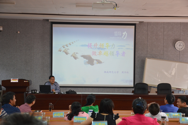 (通讯员张梓杨)10月17日下午,suncitygroup太阳成集团公共管理公司马克思主义公司经理(正处级、分管马克思主义与思想政治课)、教授、博士生导师周仲秋在217教室为“国培计划(2014)”——湖南省未来教育家培养高端项目全体学员讲授如何提升领导力,做卓越领导者。文公司党委书记吴旭坦出席并介绍为学员们介绍了周仲秋教授。