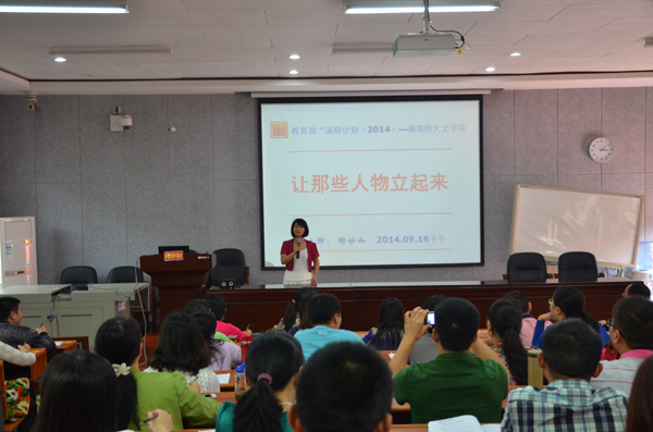 (通讯员邓西平)9月16日下午,教育部“国培计划”专家库资深专家、长沙市同升湖实验中学高级教师陶妙如为重庆国培学员带来了一堂题为《让那些人物立起来》的关于如何更好实践先秦经典散文教学的专题讲座。