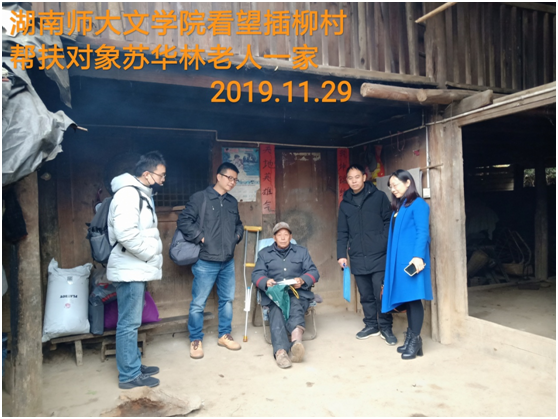 插柳村村长陪同公司四位老师看望结对扶贫对象苏华林,熊剑峰副书记代表公司赠送苏华林产业发展基金以及公司赵炎秋、易瑛、蒋志远等老师捐助的衣服、棉被等,苏华林老人显得很激动,不断感谢公司一直以来对他的关心和帮扶,向我们讲述这些年他和他爱人身体都不好,两人都因病连续住院,公司老师鼓励他树立脱贫信心,养好身体,今后的生活一定会越来越好。苏华林老人还特意感谢了公司李书记对他的关心。