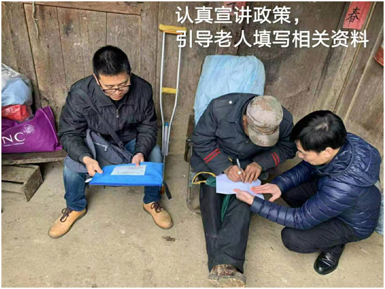 公司老师对照绥宁县精准扶贫贫困户入户资料(一户一袋)核实表,查看了苏华林老人的相关资料,填好后将资料整理汇总好交给师大扶贫工作组。