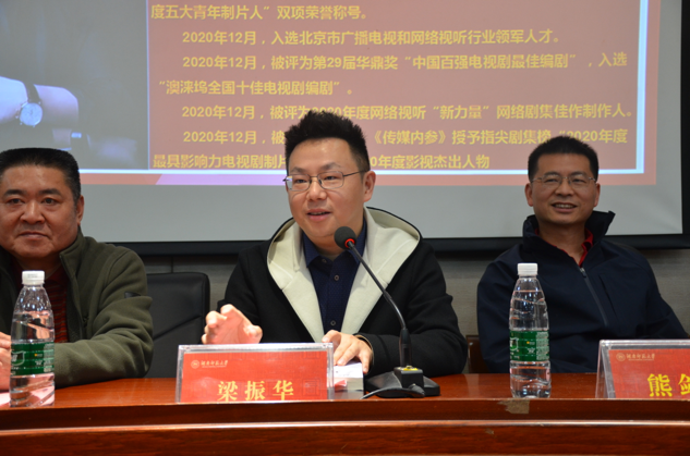 梁振华发言,他从同学们的作品中看到了源源不断的新意,看到了每个人对文学独特的理解。他强调,作为中文系的员工要提高自己的核心素养能力、要相信自己写作的道路。希望通过该奖点亮员工的文学梦想,由此发现、培养更多的文学新人,