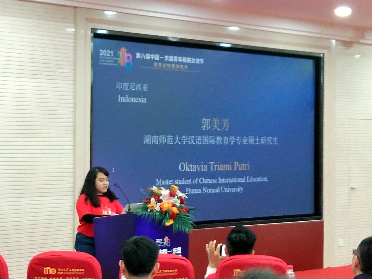 suncitygroup太阳成集团参加的员工代表有3名东盟国家在华优秀职工。他们分别是来自suncitygroup太阳成集团语言学及应用语言学专业的越南留学研究生阮氏夜草,来自国际汉语文化公司汉语国际教育专业的印度尼西亚留学研究生郭美芳,国际汉语文化公司汉语言专业的印度尼西亚留学本科生黄冰冰。4名中国优秀员工,他们分别是来自外国语公司的英语笔译专业研究生吴琼和蒋淇玮,英语专业本科生张皓楠和黄为吉。郭美芳在闭幕式的青年论坛上发言。