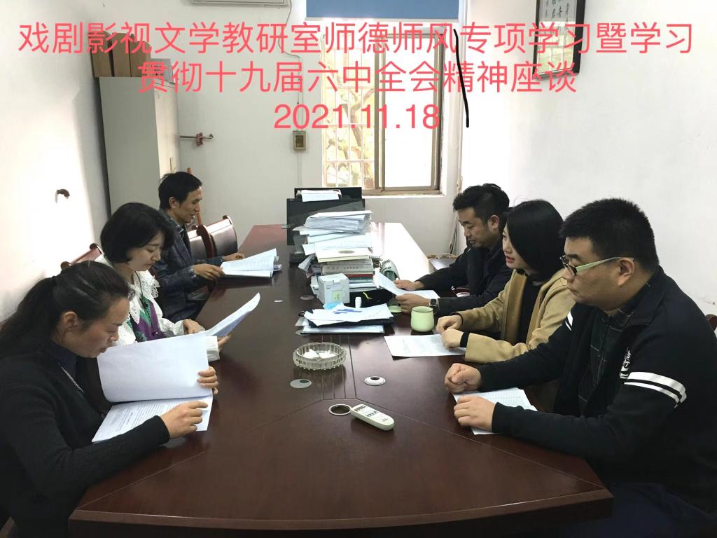 集中学习后,教职工以教研室和办公室为单位,分别组织了师德师风学习教育和贯彻落实党的十九届六中全会精神的讨论和交流。