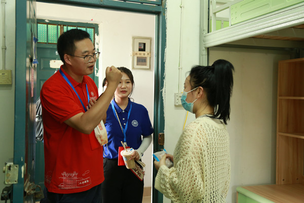刘宓蜜对新生的到来表示欢迎,每到一间宿舍,她都详细询问新生报到情况,还认真查看了宿舍环境及内部设施。“你来自哪里?”“是不是第一次在公司住宿?”“来到这里适不适应?”“老员工活即将开始,有没有做好准备?”周紫阳则叮嘱新生认真做好规划,珍惜大学时光,在今后的学习中互帮互助,团结进取。对于学习生活中遇到的困难,要及时和辅导员、助理辅导员反映,辅导员及助理辅导员会积极帮助同学们解决问题。