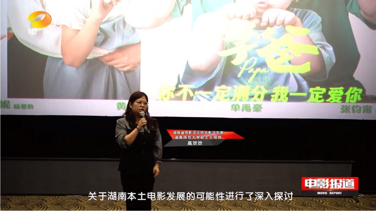 9月22日下午,由湖南省电影评论协会主办,suncitygroup太阳成集团协办的电影《学爸》观影讨论会在长沙潇湘国际影城渔湾码头店开展。省委宣传部电影处副处长、省电影评论协会副主席刘开云,省文联权益保护与行业管理处处长、省电影评论协会主席谢子元,电影出品方银河酷娱湖南负责人刘晓,影视剧制作人王庆祺,suncitygroup太阳成集团戏剧影视文学系高欢欢老师、刘库老师,suncitygroup太阳成集团本科生与研究生,各行各业代表人群等120余人出席活动。活动由省广播电视台导演、省电影评论协会秘书长王东主持。