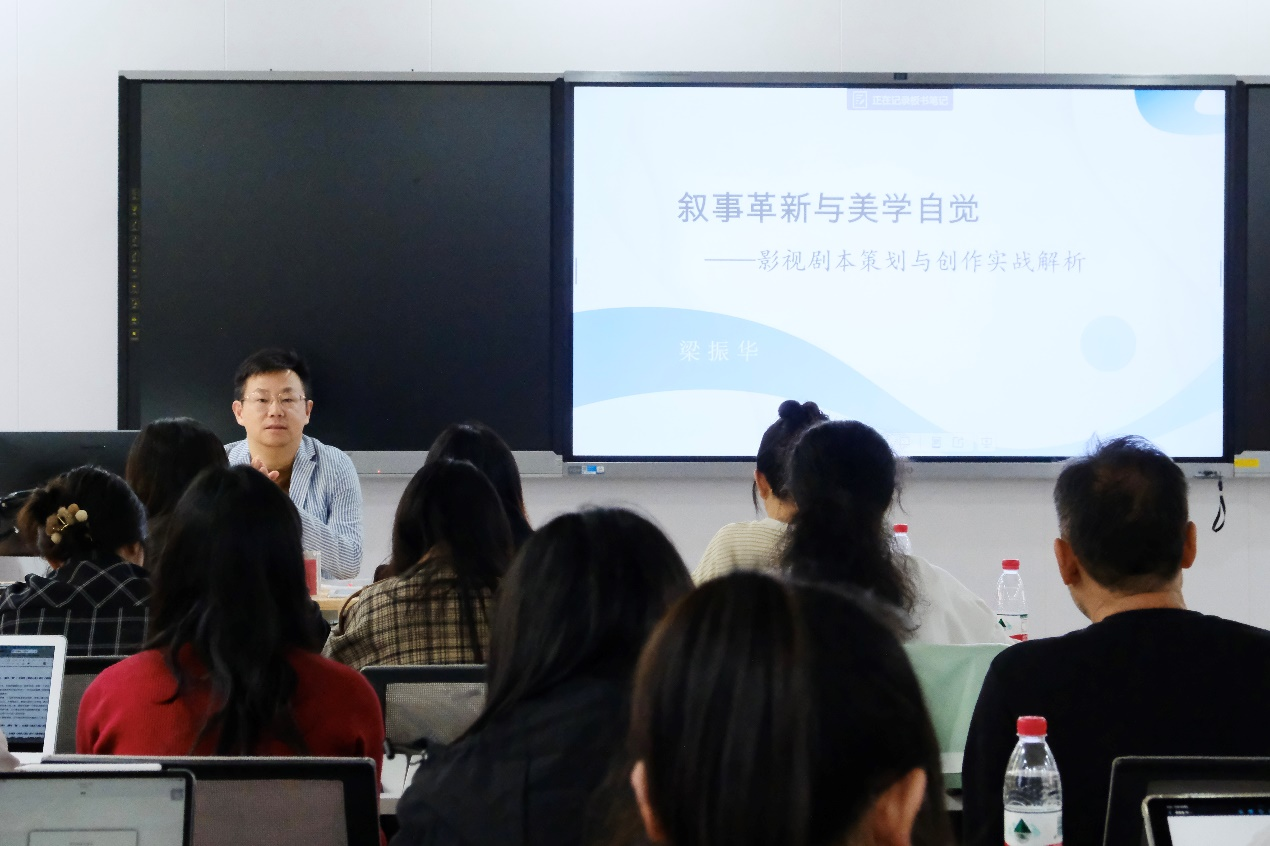 课程结束后,同学们积极参与讨论、提问,梁振华则结合具体影视作品和个人经验进行一一解答,现场氛围活泼热烈。课后同学们纷纷表示,“感谢梁老师的精彩授课和公司提供的学术交流机会,使自己不仅开拓了影视创作的视野,更学习了宝贵的学术研究方法。”