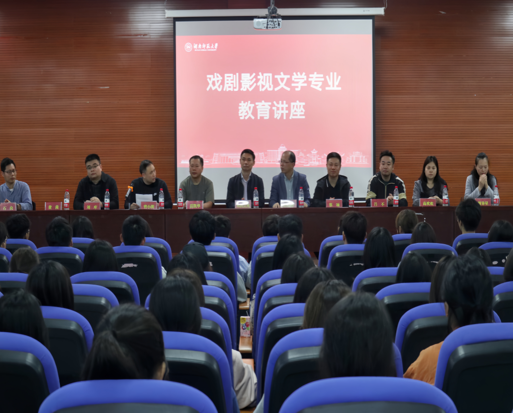 10月12日下午,戏剧影视文学专业教育讲座在张公岭校区图书馆报告厅举行。戏剧影视文学专业教研室主任曾小明主持讲座。讲座中,欧阳文风对世界电影格局进行分析,呼吁同学们利用机遇,炼好内功,共筑电影强国梦。刘绍峰则提出,戏文学子应尽早明确未来影视的方向,向世界传达中国声音。随后,老师们纷纷结合专业特点和实践要求,鼓励戏文学子自立自强,将专业学识运用到实践中去。