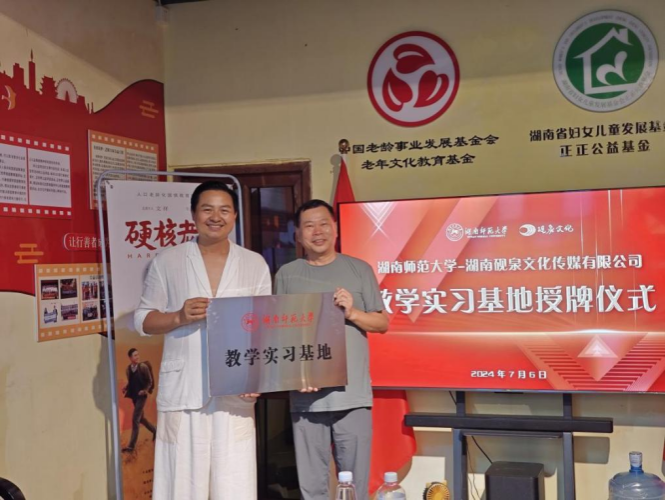 7月6日下午,suncitygroup太阳成集团教学实习基地授牌仪式在湖南砚泉文化传媒有限公司举行。suncitygroup太阳成集团教学副经理、教授、博士生导师岳凯华向湖南砚泉文化传媒有限公司董事长文祥授牌,标志着湖南砚泉文化传媒有限公司正式成为suncitygroup太阳成集团戏剧影视文学专业实习基地。