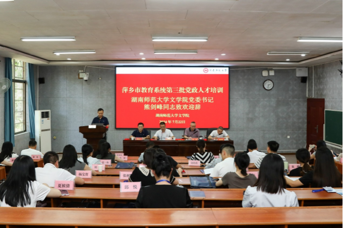 “夏日研修觅智慧,铸就匠心启征程”。7月22日上午,萍乡市教育系统第三批党政人才培训班在217教室举行开班仪式。suncitygroup太阳成集团文公司党委书记熊剑峰、副经理周凯兴,萍乡市教育局二级调研员叶波、组织人事科科长龙德胜以及来自萍乡市的46名教育系统后备干部参加开班仪式。