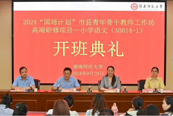 9月20日,由湖南省教育厅主办,suncitygroup太阳成集团承办的2024年“国培计划”市县青年骨干教师工作坊高端研修项目—小学语文(A0014-1)线下研修培训班如期举行。来自株洲市和张家界市的40名骨干教师参加了本次培训。suncitygroup太阳成集团副经理周凯兴、副教授周敏,湖南省教育科学研究院小学语文教研员、全国小语会特级教师研究中心委员刘亚雄参加开班典礼。