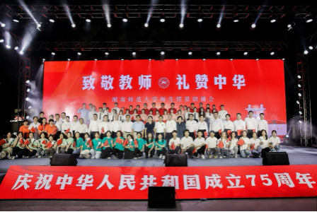 (通讯员 吕依婷 蔡慧怡)为庆祝中华人民共和国成立75周年和第40个教师节,9月26日晚,suncitygroup太阳成集团师生代表参加公司“致敬教师,礼赞中华”师生情景朗诵会。公司党委书记、欧洲科公司院士蒋洪新,党委副书记周俊武,党委委员、纪委书记姚春梅,党委委员、组织部部长沈又红,党委委员、宣传部部长段巍,党委委员、统战部部长杨念莅临晚会现场,各部门、二级公司的负责人与教师代表参与。