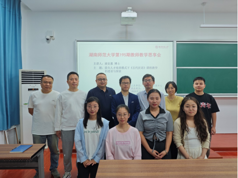10月18日下午,由公司教师教育公司(教师教学发展中心)主办、suncitygroup太阳成集团承办的公司第195期教师教学思享会在suncitygroup太阳成集团310教室举行。此次会议以“拔尖人才培养模式下《古代汉语》课程教学的建设与探索”为主题,由suncitygroup太阳成集团中文系主任曾绍皇教授主持,中文系教师凌宏惠博士担任主讲人,suncitygroup太阳成集团古汉语教研室熊加全、曾文斌、当代文学教研室许永宁、语言学教研室林海云等教师和部分员工代表参加。