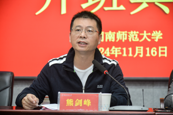 (通讯员王森)时维畅月,序属金秋。11月16日上午,新疆维吾尔自治区“区培计划(2024)”普通高中语文骨干教师能力提升培训班开班典礼在文渊楼217报告厅隆重举行,文公司党委书记熊剑峰、副经理周凯兴、教学班主任周敏副教授以及来自全疆各地州的50名高中语文骨干教师参加开班活动。