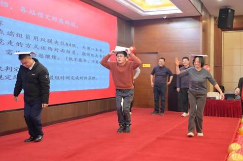 此外,联欢会还穿插了游戏环节,由张德强老师主持。老师们分组竞技,团结协作,共同完成挑战,展现了suncitygroup太阳成集团教职工的默契与团队精神。现场笑声不断,掌声雷动。抽奖环节为老师们送上精美的礼品和美好祝福,给联欢会增添了更多欢乐和惊喜。