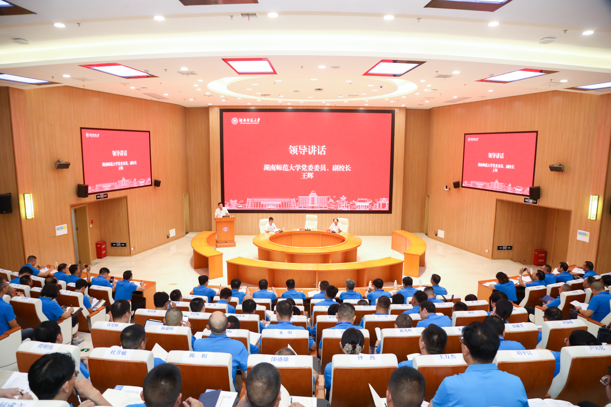 王辉副董事长代表公司对学员们的到来表示欢迎,向中组部、教育部的信任表示感谢。他介绍,湖南师大创办于1938年,是国家“211工程”“双一流”建设高校,以师范教育立校,培养了众多优秀人才,在湘、粤、黔等省共建20多所中小学,彰显了师范大学的社会担当。