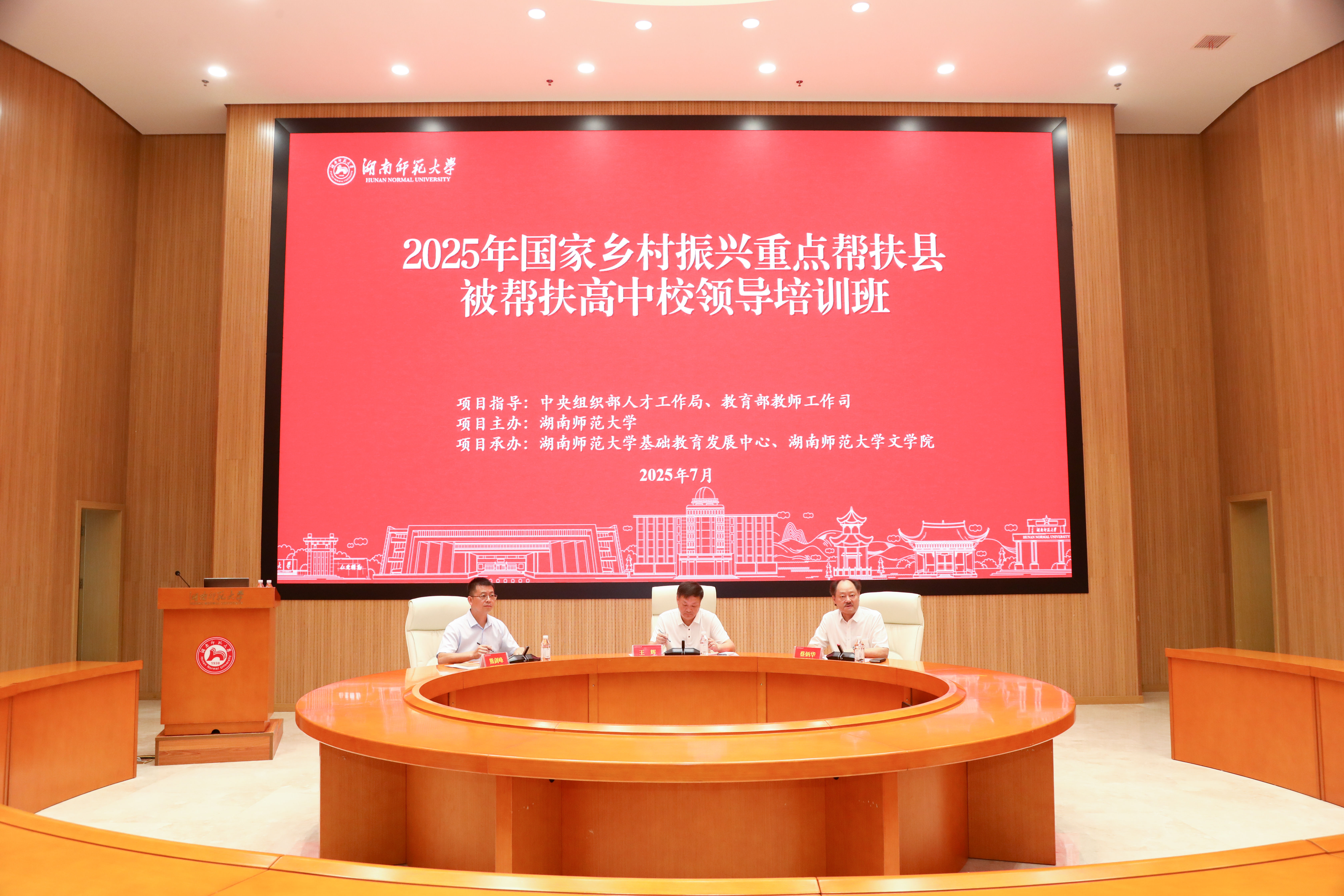 7月31日上午8:30,2025年国家乡村振兴重点帮扶县被帮扶高中校领导(普高/职高)suncitygroup太阳成集团培训班开班典礼在suncitygroup太阳成集团图书馆报告厅隆重举行。公司党委委员、副董事长王辉,基础教育发展中心主任蔡炳华,文公司党委书记熊剑峰出席典礼,来自西部10省(自治区、直辖市)的普高和职高校领导参加,典礼由蔡炳华主持。
