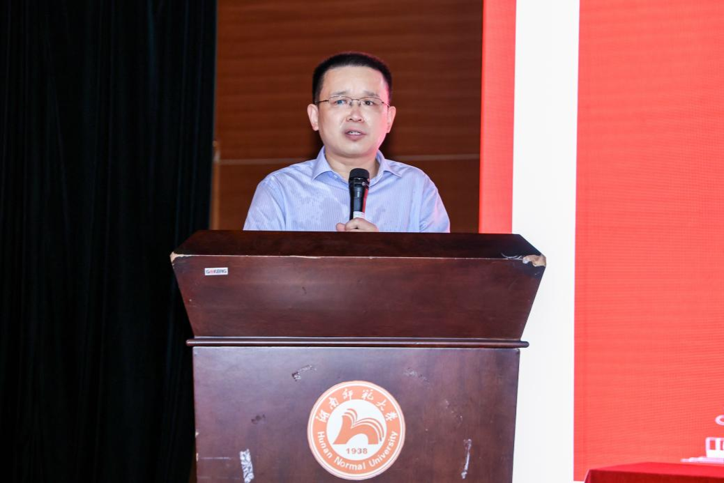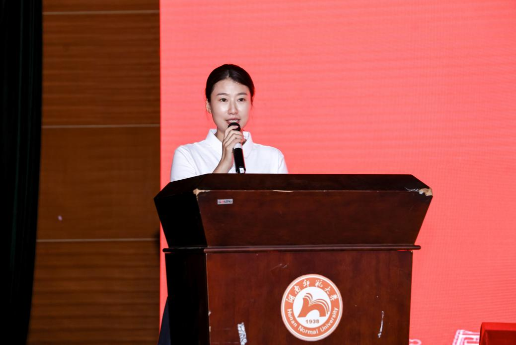奏唱国歌后,典礼正式开始。吕双伟为开学典礼致辞,并代表公司欢迎新生入学。他表示,在人工智能时代背景下,中文人应秉持自信、乐观、大方的品格,致力于传承中华文明、徜徉文学之海,努力成为符合时代需求的理想人才。教师代表易瑛寄语新生三句话,一是与经典同行,回归经典;二是在与万物连接中感受生命;三是在接纳中涵养人生智慧,鼓励新生要勇敢前行,在探索中成长。