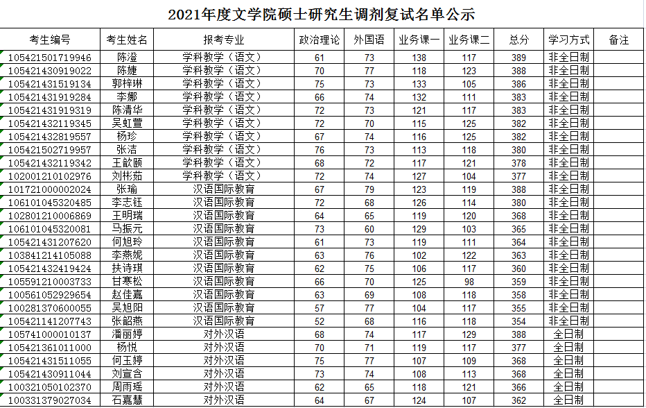 2021年攻读硕士学位研究生调剂复试结果(一)