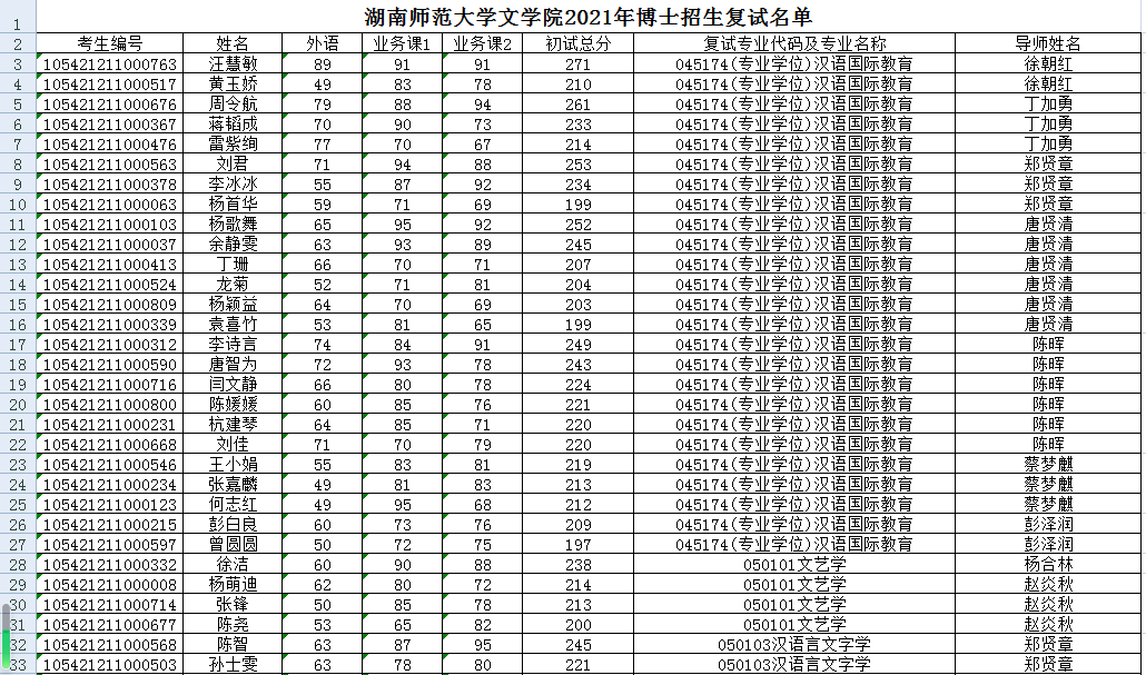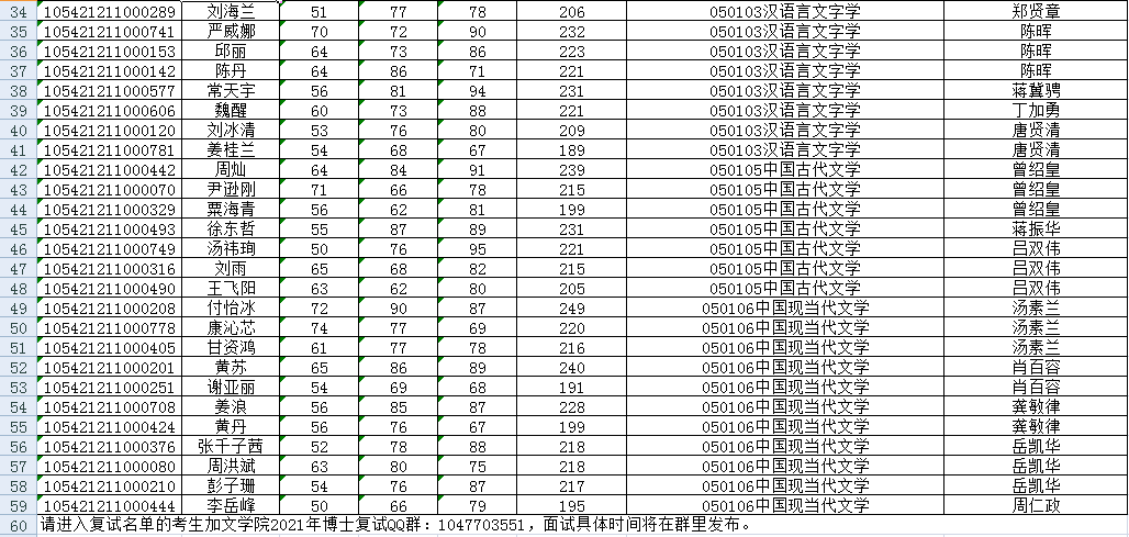 2021年攻读硕士学位研究生调剂复试结果(二)
