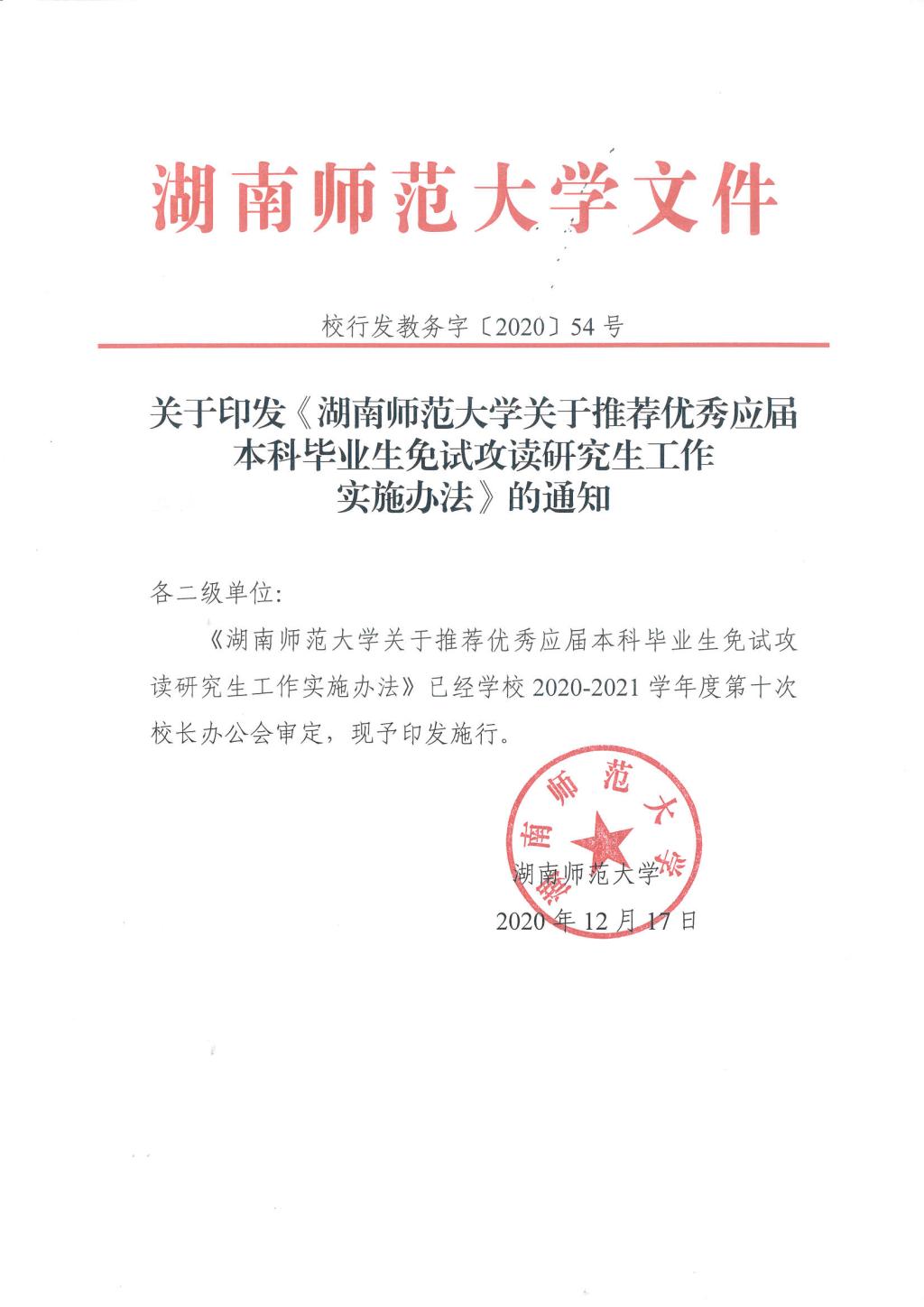 关于印发《suncitygroup太阳成集团关于推荐优秀应届本科毕业生免试攻读研究生工作实施办法》的通知