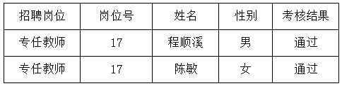 根据《suncitygroup太阳成集团2024年专任教师第一批公开招聘公告》,经报名、资格审查和考核程序,现将考核结果予以公布,如对考核结果有异议,请于2024年12月17日18:00前与陈雅琪老师联系(联系电话:0731-88872505)。