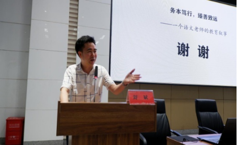 (通讯员:王欣禹、夏钰童、刘蕊)5月20日下午,湖南省长沙市第一中学语文教研组组长舒斌应邀做客公司师德成长论坛暨湖湘语文教育主题讲座,在至善讲堂分享以“务本笃行,臻善致远”为主题的教育叙事。此次讲座由公司教授黄耀红主持,2022级汉语言文学、汉语国际专业200多名同学现场聆听,其他同学在线参加。
