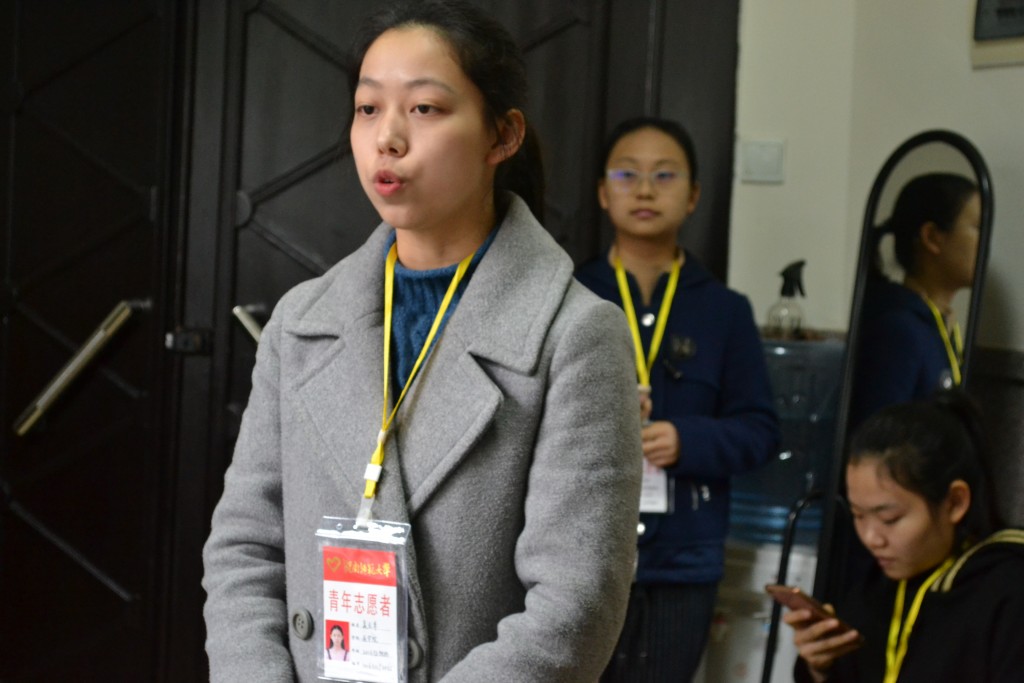 第一轮讲解,志愿者们姿势仪态落落大方,普通话标准,吐字清楚。但因为第一次上岗第一位志愿者稍显紧张,偶有忘词现象。第二位则更加自信,将烈士生平英勇事迹娓娓道来,吸引了一批游客。一轮讲解完毕后,志愿者们回到办公室,负责人提出先让大家自评。来自suncitygroup太阳成集团16级的包金东反思自己“声音不大,吸引不了游客,接下来要更加自信”。自评完毕后负责人一一点评,她指出“大家普遍的问题就是说话声音没有起伏,听起来像是在背书,而且缺少与游客的互动”,说完之后便给大家做了示范。
